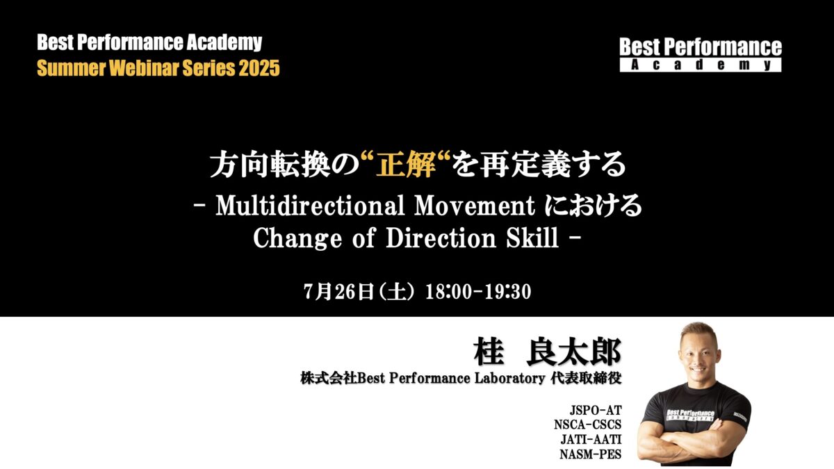 Best Performance Academy主催ウェビナー実施報告 2025.07.27 7月26日(土)、Best Performance Academy主催オンラインセミナーを開催いたしました。 方向転換の“正解“を再定義する 〜Multidirectional Movementにおける Change of Direction Skill〜 と題し、 代表の桂が講師を務めさせていただきました。 皆様の現場指導に活かしていただければ幸いです。ご受講いただいた皆様、ありがとうございました! 新しい記事へ 古い記事へ