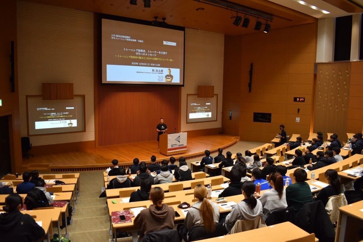 JATI 第6回北海道地区学生トレーニング指導者研修・交流会 登壇報告 2025.12.06 【トレーナー活動報告】 12月6日に、札幌国際大学にて開催された、 JATI 第6回北海道地区学生トレーニング指導者研修・交流会に代表の桂が登壇いたしました。 「スポーツパフォーマンスを高めるためのコンテクスチュアルトレーニング」いうテーマのもと、 非線形運動学習に基づくコンテクスチュアルトレーニングの理論と実践についてご紹介いたしました。 ご参加いただいた皆様、ありがとうございました! 新しい記事へ 古い記事へ